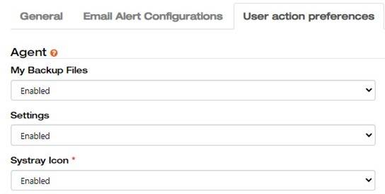 Backup Schedule Frequency: BluVault Home > Policy Management > User action preferences > Agent > Systray Icon