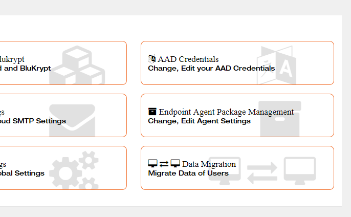Data Migration: BluVault Home > Settings > Cloud Settings Tools > Data Migration