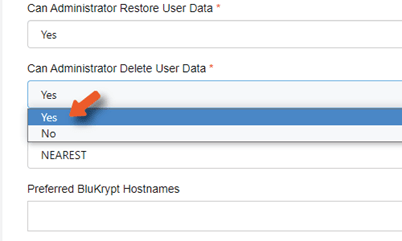 Administrative Delete: BluVault Home > Settings > Global Settings > Data Management > Can Administrator delete other users’ data > Enable