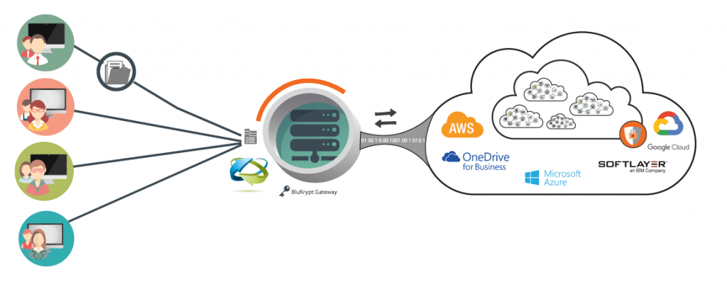 BluSync Secure File Sync enables your employees to collaborate seamlessly among themselves and also with external parties across locations, while allowing access across multiple devices, so business gets done on the go. It supports a concept called mini-clouds, allowing groups of users to collaborate effectively. It leverages BluKrypt™ – unique storage container technology – to make the solution unmatched in terms of security, privacy, and control when deployed in a public or hybrid cloud configurations. BluSync Secure File Sync is cloud/storage agnostic and works with several popular cloud storage providers seamlessly.
