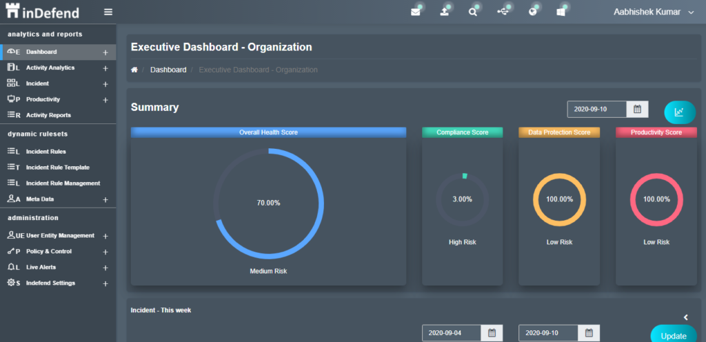 inDefend provide Industry’s True UEBA with DLP which focuses on providing an end-to-end solution for Insider threats and data-leak covering a unique combination of Data leak prevention solutions, Compliance, and Governance with a proactive approach from a single solution. This unique concept offers single client single server architecture and has an inbuilt database and data classification feature, which means the customer doesn’t need to worry about relying on different vendors.