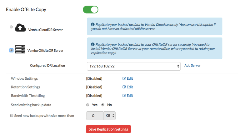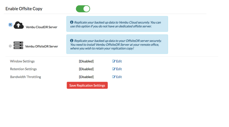 Reap the benefits of both local backup & cloud backup with Vembu Cloud DR Solution. You can have the primary copy of your data in on-premises and replicate the secondary copy to Vembu Cloud.