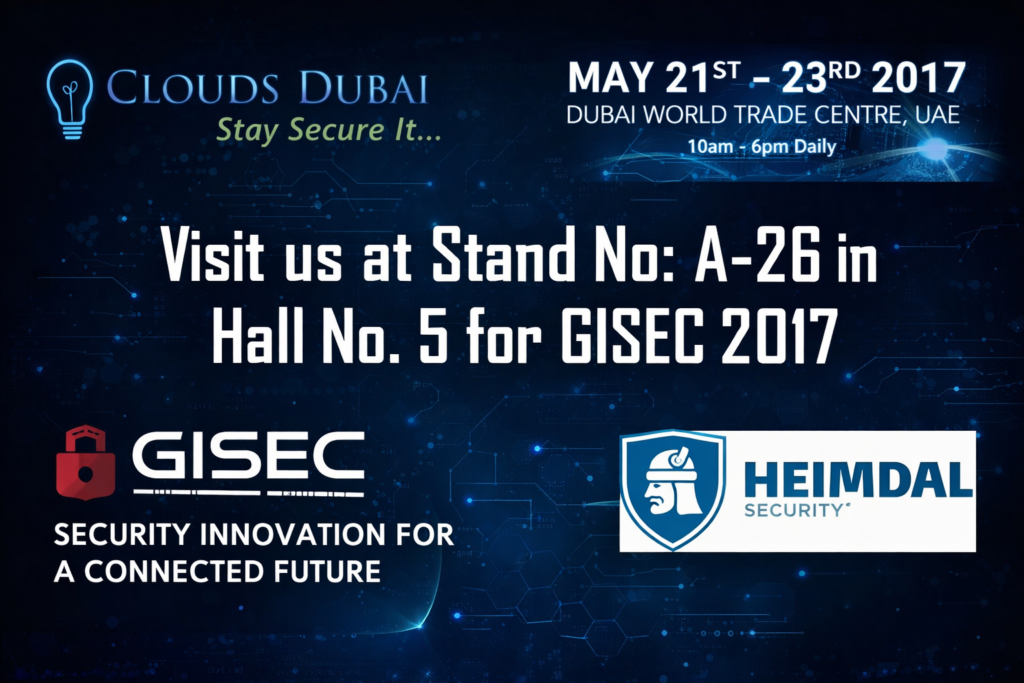 Clouds Dubai is participating for GISEC 2017 at Dubai World Trade Centre Exhibition center. Our security consultants will be present with our vendor at Stand No.26 in Zabeel Hall No.5. Visit us at GISEC to know more about practical ways of staying secure in today’s world where attacks on Middle East companies are growing on a regular basis.